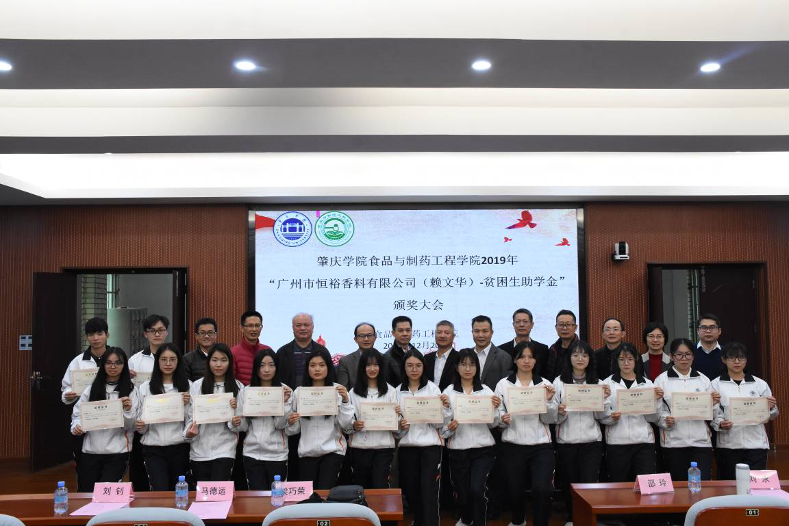 据悉,该贫困生助学金,每年10月前,向我院提供资助资金20000元,作为新宝gg在线注册“恒裕香料贫困生奖学金”项目奖助学金,用于奖励和资助符合条件并经评选推荐产生的15名困难学生,每人1000-2000元。