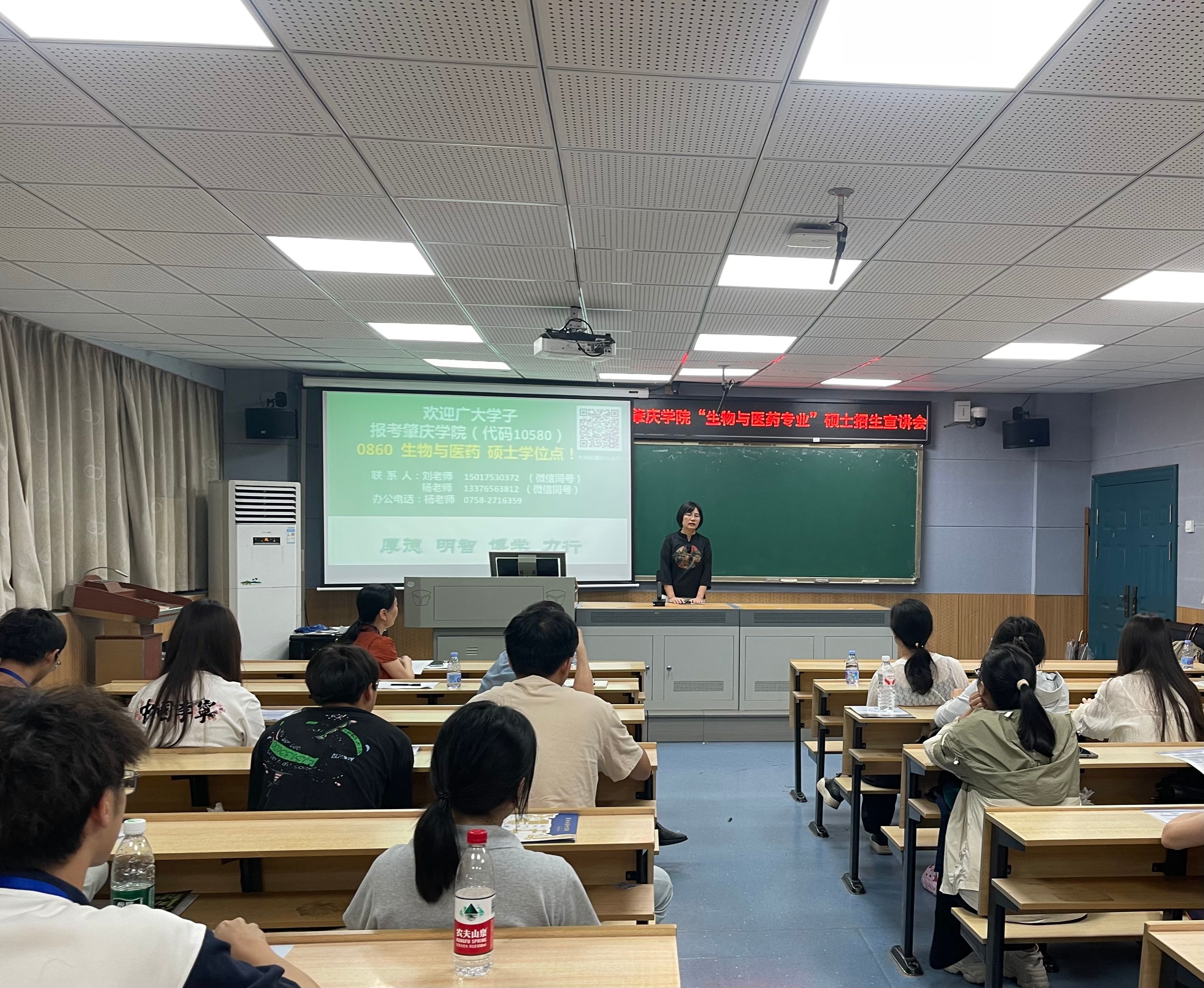 在研究生招生宣讲会上,邵玲院长详细介绍了我校生物与医药硕士点的研究方向、导师团队、奖助政策及发展前景,成功吸引学生的关注,现场答疑引发热烈反响。会后,双方开展座谈,就硕士点学科优势、建设规划、研究生培养经验、学生实践培养、科研合作方向等方面进行了深入研讨。
