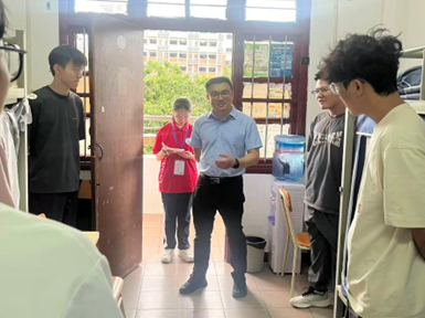 为尽快帮助新生适应大学环境,林书记率全体辅导员与班主任组成慰问团队,专程深入新生宿舍开展走访慰问。每踏入一间宿舍,一行人都细致察看住宿条件与环境细节,言语间满是关切地询问新生是否适应集体生活节奏、个人行李是否已妥善安置。同时,林书记还反复叮嘱同学们务必绷紧用电安全这根弦,鼓励大家主动沟通交流,尽快与室友建立融洽的同窗情谊。领导与老师们的亲切到访,不仅让初入校园的新生们真切感受到学校与学院的温暖关怀与高度重视,更化作一股坚实的力量,坚定了他们在大学这一新起点上逐梦前行、绽放青春的信心与决心。