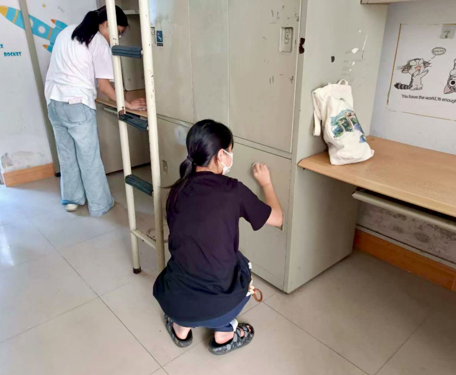 为给新生营造整洁、舒适、健康的入住环境,学院早在新生报到前一周便启动了 “迎新环境优化专项行动”。针对秋季蚊虫较多的情况,志愿者们协同配合,对学生宿舍楼道、卫生间、阳台及周边公共区域进行了全面的灭蚊消杀,采用安全环保的药剂,确保无卫生死角;同时,志愿者们分组进入新生宿舍,展开 “大扫除攻坚”,从擦拭门窗、清理桌面到整理床铺、检查水电,每一个细节都力求做到极致。一系列前置筹备工作,不仅为新生的到来扫清了环境障碍,更彰显了学院 “以生为本” 的服务理念,为迎新工作的顺利开展筑牢了坚实基础。