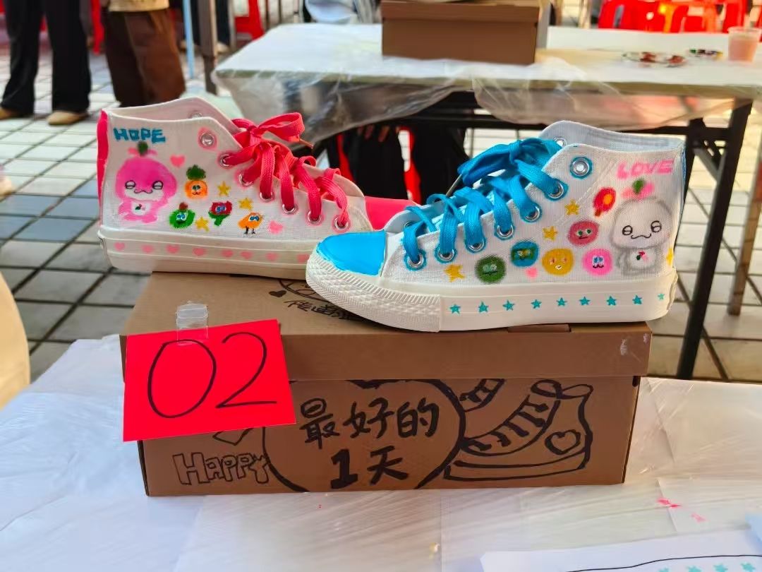 活动历经初赛筛选,123组报名选手中有29组闯入决赛。决赛伊始,主持人介绍了比赛规则。选手们凭借独特的构思勾勒初稿,于丰富色彩中精准选材,用心绘制每一双鞋子,并附上饱含关怀的书信,希望以此温暖山区孩子的步履,点亮他们的光彩。